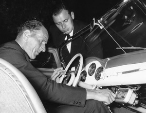 ![]() Allan Borgefors SMK Östgöta sittande och Harry "Pilot" Falkenberg som konstruerade Speedpiloten. Allan vann Midnattssolsrallyt 1955 med en Porsche cab. Fördelen att åka öppet var att kartläsaren kunde stå upp och se om det var rakt efter knäpporna. Foto: Björn Kronlund ![]() Lennart Eliasson SMK Motala bilden tagen i mitten på 60-talet. Foto ? |