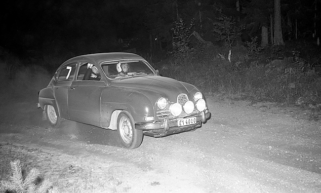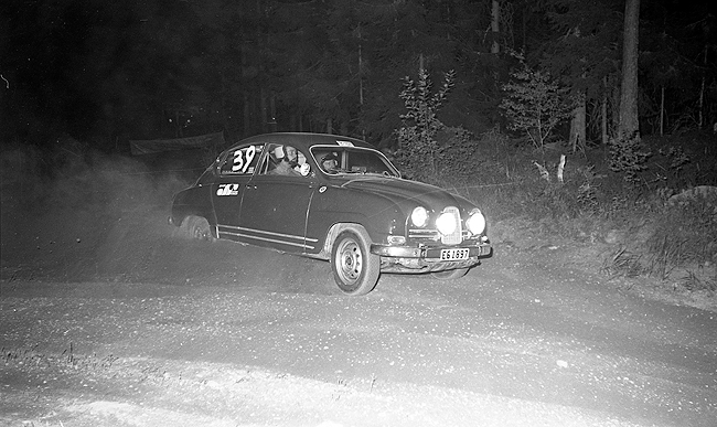 Foto: Sven Fransson. Nils Göran Törnvall Västra Östergötlands MK med en Saab Sport. |
