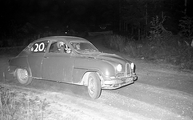 Foto: Sven Fransson. Kalevi Soinio Finspångs MS med en Saab Sport. |
