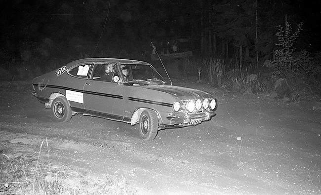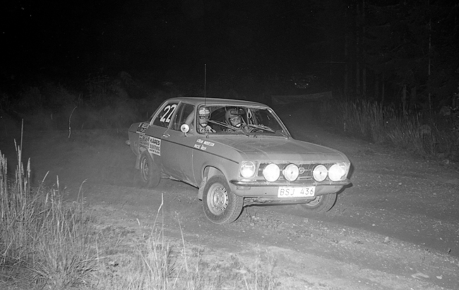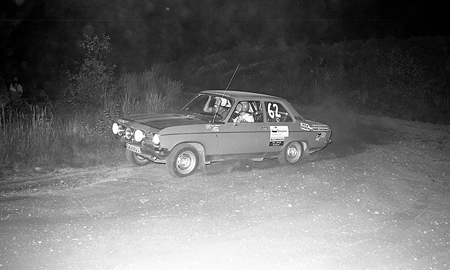 Foto: Sven Fransson. Föråkare var Sven Olof Sandberg MSK Kvarnvingarna med en Opel Rally Kadett. |