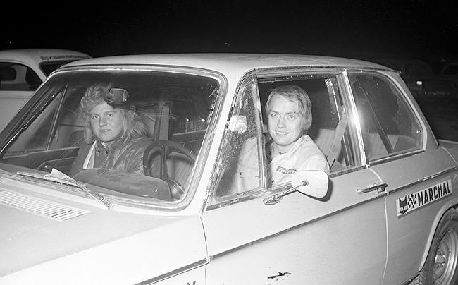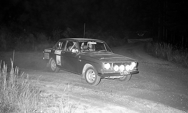 Foto: Sven Fransson. Gösta Gunnarsson Vimmerby MS med en Volvo 142. |