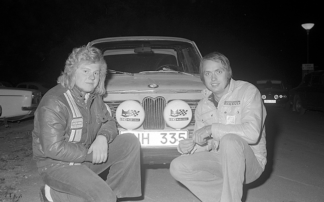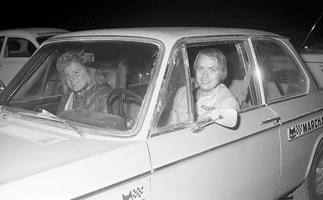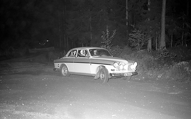 Foto: Sven Fransson. Berndt-Åke Andesson och I Sjöholm Tranås MS med en Volvo Amazon. |