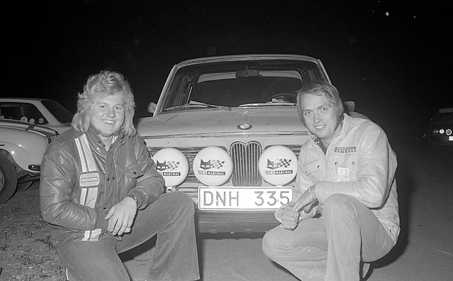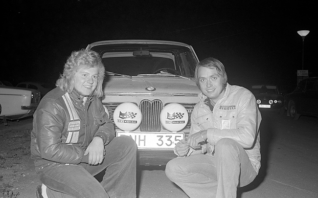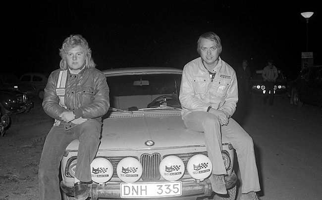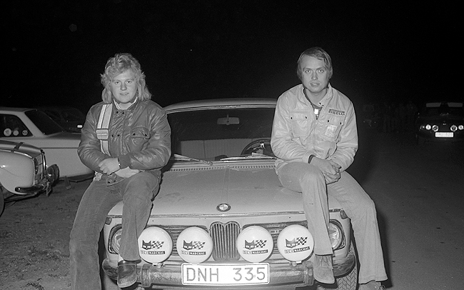 Foto: Sven Fransson. En bild på vinnarna NN och Ingvar Carlsson SMK Nyköping med en BMW 2002 Tii. |